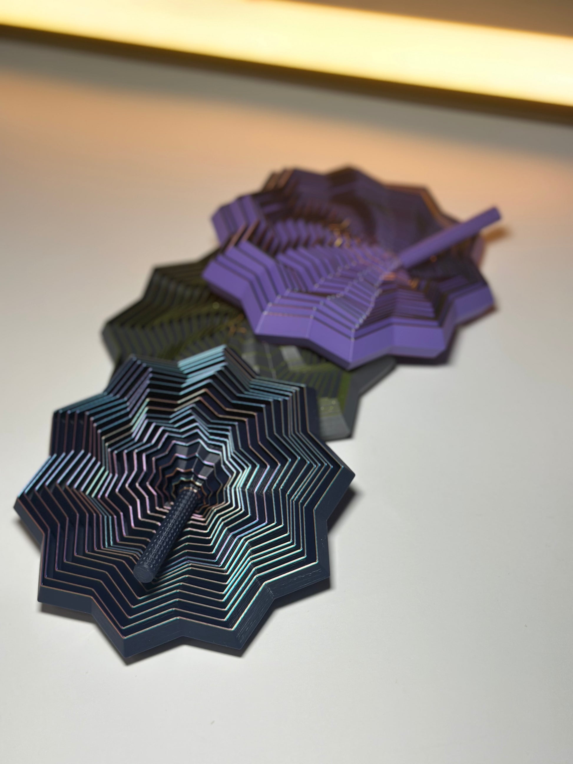 Tai modernus, 3D spausdintu būdu pagamintas antistresinis žaislas, sukurtas tiems, kurie mėgsta sukioti, maigyti ir jausti rankose kokybišką mechaninį judesį. Dėl eglutės formos ir tvirtos konstrukcijos šis fidgetas patogiai telpa delne ir suteikia malonų, sklandų veikimą.